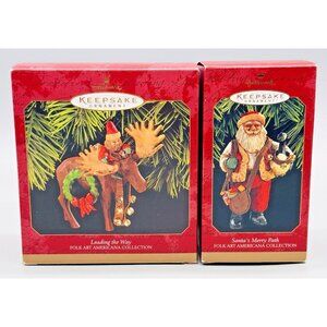 Hallmark Keepsake Folkart Americana Santa's Merry Path Leading the Way Lot of 2