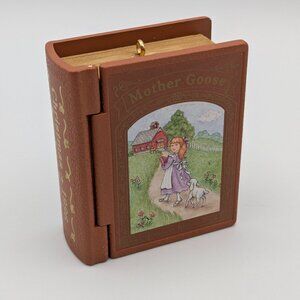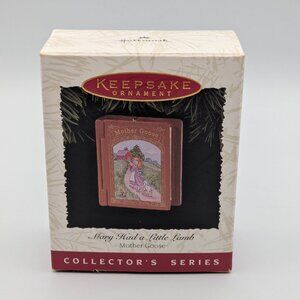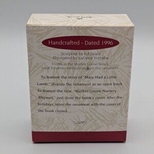 Hallmark Keepsake Mary Had a Little Lamb ornament, 1996, 4th in the Mother Goose Series. Handcrafted design with a book that opens and closes. Ornament is new in box; box has very minor wear due to age and may have a numbered sticker on top.