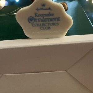 This Hallmark Keepsake Miniature Ornament from 1995 is a great addition to any collection. The ornament features a charming skating moose and is part of the Keepsake Collector's Club. It was manufactured in China and is a type of hanging decoration. The ornament is in great shape and can be used for holiday and seasonal decorations.