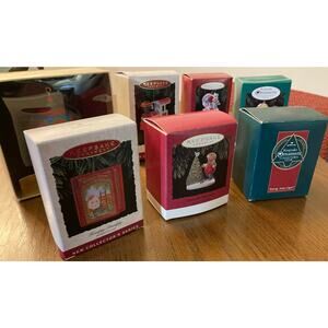 Add a touch of vintage charm to your holiday decor with this Hallmark Keepsake Collector's Series ornaments Lot of 7 with Boxes.