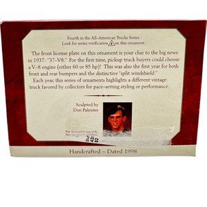 Hallmark Keepsake Ornament 1937 Ford V 8 All American Trucks 1998 Vintage