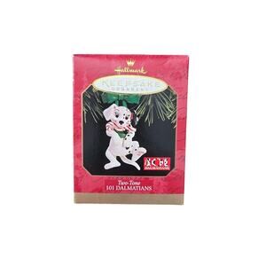 New in box Hallmark Keepsake Ornament from 1997 features a Disney 101 Dalmatians theme, specifically showcasing a Dalmatian dog . This vintage ornament is designed for Christmas celebrations. The ornament is part of the Hallmark collection and includes a single item, perfect for hanging on a Christmas tree during the holiday season.
