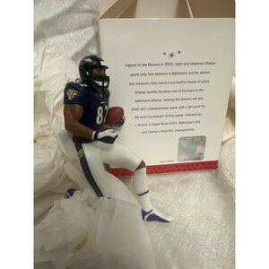 This Hallmark Keepsake ornament celebrates Shannon Sharpe's contribution to the Baltimore Ravens. A collector's item for NFL enthusiasts and sports memorabilia fans.
