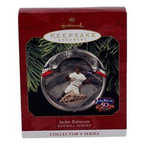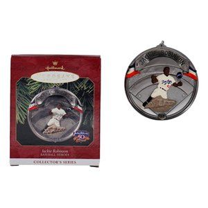 Celebrate baseball history with the Hallmark Keepsake Jackie Robinson Baseball Heroes Collector Series ornament. A perfect keepsake for sports enthusiasts and collectors, this ornament captures Robinson's legendary athleticism in a beautifully crafted design.