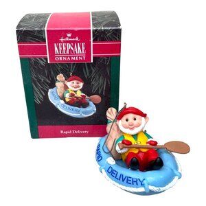 Hallmark Keepsake Ornament Set Of 1991 Elf In Boat Rapid Delivery Lot 3 Beaver