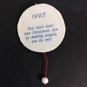 This Hallmark Keepsake Ornament from 1993 features a cute snow bear angel. Pull the cord to see its arms and legs move, adding charm to holiday decor.