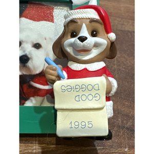 This Hallmark Keepsake Ornament from 1995 is the perfect way to showcase your beloved dog. It's a green and white, dog-themed picture holder, designed to add a personal touch to your Christmas tree.