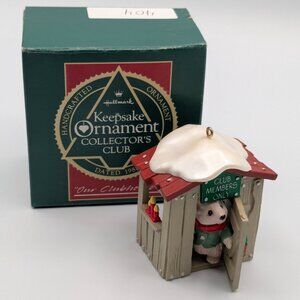 Hallmark Keepsake “Our Clubhouse” ornament from 1988, a Keepsake of Membership design. Handcrafted and pre-owned; ornament is in excellent condition, and the box shows wear from age and storage with a numbered sticker on top.