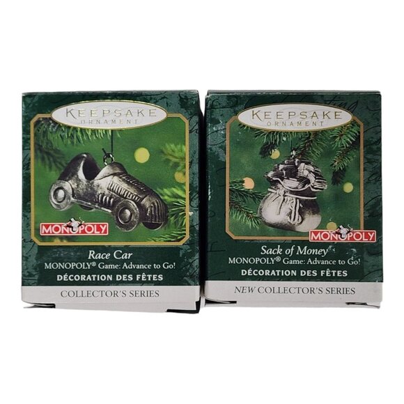 Hallmark Keepsake Pewter Monopoly Pieces Miniature Christmas Tree Ornament Set
