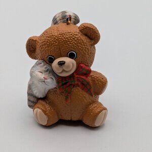 Hallmark Keepsake Purrfect Snuggle 1988, Teddy Bear w/ Kitten Vintage Ornament