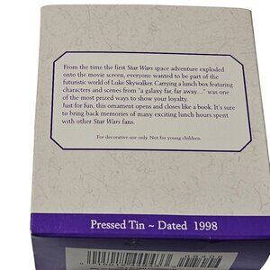 This collectible mini lunch box ornament features iconic Star Wars imagery, showcasing detailed scenes and characters. A nostalgic piece for fans.