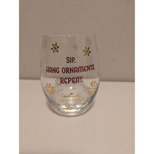 Celebrate in style with this Hallmark Keepsake stemless wine glass. Adorned with gold and white snowflakes and the playful phrase "Sip. Hang Ornaments. Repeat." Perfect for holiday festivities and winter gatherings, it adds a touch of cheer to your celebrations.