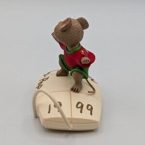 This unique 1999 Hallmark Keepsake ornament, sculpted by Ed Seale, features a mouse surfing on a computer mouse with the charming message: "A mouse is used to surf the net, as you already know, but when a mouse can surf a mouse, the two make quite a show!" Customized with "Nana & Pop-Pop 1999" in gold marker, the ornament is pre-owned in good condition, with the box showing wear due to age.
