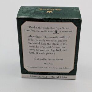Hallmark Keepsake “Teddy-Bear Style” ornament from 1999, third in the series, miniature and handcrafted. Pre-owned; ornament is in excellent condition, and the box shows wear from age and storage.