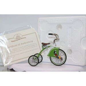 A charming collectible featuring Mickey Mouse on a classic velocipede, perfect for Disney enthusiasts and vintage toy collectors. This Hallmark Kiddie Car Classic brings nostalgia and joy to any collection.