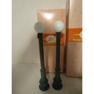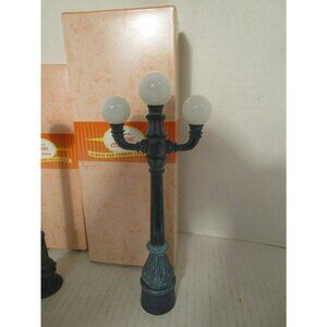 Taken out of box for the first time for these photos. Triple Lampost measures 7.5" tall with 2 single 7" lamposts. These are well made out of cast iron bases that looked aged.
