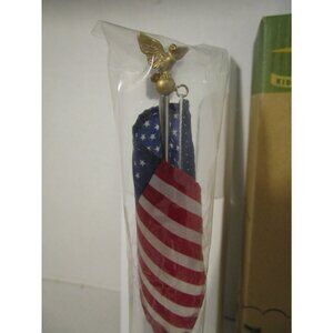 Taken out of box for the first time for these photos. Measures 9" tall. Eagle on top of flagpole with US Flag.