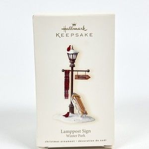 Hallmark "Lamppost Sign" Winter Park Ornament 2007 New Open Box