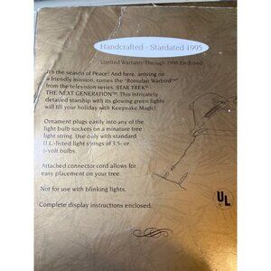 This Hallmark Magic Ornament—Star Trek Romulan Warbird Lighted is a delightful addition to any holiday decor. Made from durable plastic, it features an intricate design and lights up for a magical display.