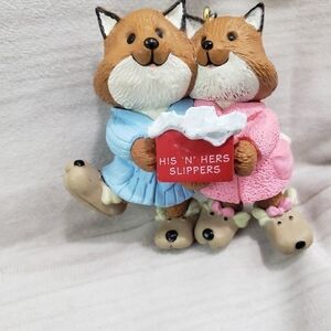 Hallmark Mom & Dad Fox In Robes & Slippers Christmas Ornament 1993 Keepsake 2.5"