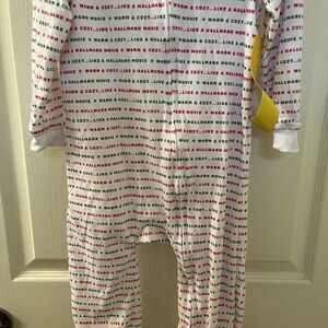 Hallmark Movie Channel Kids Footed Pajamas Footie Christmas Size 3T. New With Tags. Has Warm & Cozy . . . Like A Hallmark Movie written all over it in red and green. The perfect cozy sleeper pajamas to watch Hallmark Movies in during Christmas and the holidays. Works for both girls and boys.