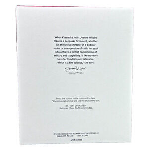 Press the button on the ornament to hear "Christmas is Coming" and see the characters spin.