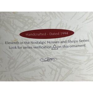 This Hallmark Keepsake Ornament, part of the 1994 Collector's Series, showcases a beautifully detailed neighborhood drugstore. It features intricate design elements that reflect the nostalgia of vintage storefronts, adding a charming touch to any holiday decor. The ornament is crafted with precision, making it a valuable addition for collectors and holiday enthusiasts alike.