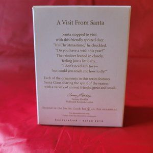 Cute Vintage looking Santa and Reindeer collectible ornament. New inside the box. Didn't even want to open the packaging inside to photograph. There is one little crush spot on the top of the box. Barely noticeable. Pet and Smoke free home.
