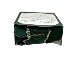 The box shows significant wear and tear with multiple tears and scratches. The ornament is in excellent condition.