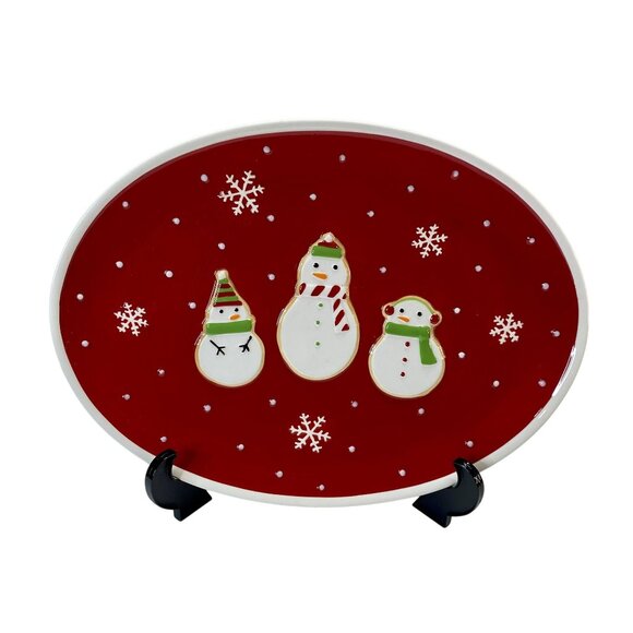 Hallmark Red Oval Snowman Christmas Platter 15x11 Ceramic Holiday Platter Tray