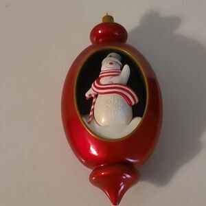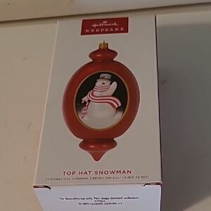 Celebrate the holidays with the Hallmark Red Top Hat Snowman Ornament. This charming decoration adds a festive touch to your home.