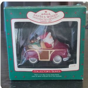 The Hallmark "Santa's Woody" ornament is part of the Here Comes Santa Series, specifically the 9th edition released in 1987. This collectible vintage piece features Santa Claus as the subject, perfect for adding a touch of nostalgia to your Christmas decor. The Hallmark brand ensures high quality and charm, making this ornament a cherished addition to any holiday collection.