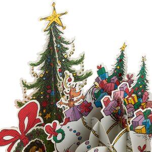Delight your holiday card recipients this year with this premium Christmas card featuring a festive paper craft display of Grinch stealing Christmas. With an impressive pop-up and intricate details, friends and family will want to display this card throughout the whole holiday season.