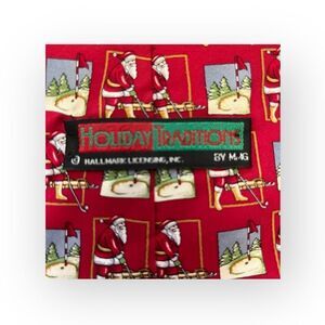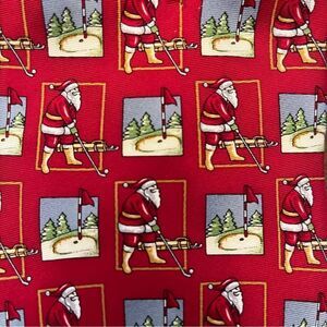 Hallmark Silk Vintage Santa Golfer Tie Red with Santa Golfing Print Christmas Holiday Traditions. Santa Claus, golf, golfer, holiday party, christmas party, office, business, professional