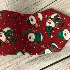 HALLMARK Yule Tie Greetings Red Neck tie with Snowman snowmen throughout. Measures 56" long, 3.75" wide. 100% Polyester. Great for the holiday ugly Christmas office party or stay at home zoom calls!