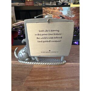 This Hallmark Special Dog Keepsake Ornament is a unique metal pet photo picture holder from 2003. It's a silver, OS sized ornament, perfect for preserving your beloved pet's memory. "Look who's starring in this prime- time feature... the worlds most beloved (and spoiled) creature!