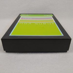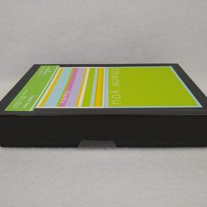 New in box Hallmark Stationery Thank You cards. Includes 2 different designs in a green style. 50 total cards (25 of each style) with 50 envelopes. Cards are blank inside. Perfect to send thanks for wedding gifts, bridal showers, baby showers, birthday gifts, and more. Made in U.S.A. Box is sealed, some minor wear on box from storage and stickers that have been removed.