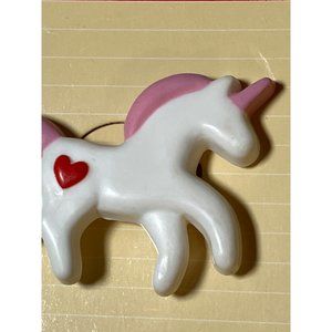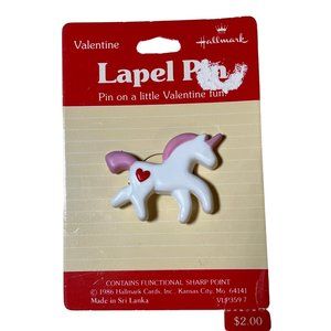 This vintage 1986 Hallmark Unicorn Valentine's Day pin is an adorable piece of nostalgia. Made of quality plastic, it's perfect for adding a touch of whimsy to any outfit or collection.