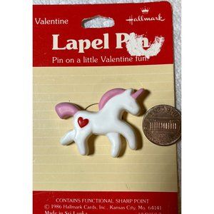 Hallmark Unicorn VALENTINES DAY PIN Vitage 1986