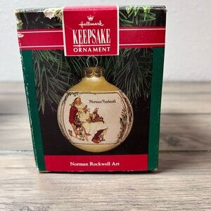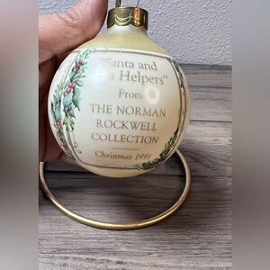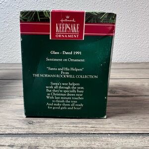 This is a Vintage 1991 Hallmark Keepsake Ornament featuring The Norman Rockwell Collection art, specifically titled "Santa and His Helpers" is in great condition. This is a Glass Ornament has been displayed during the Christmas Holiday. This ornament comes with original box without the price tag.
