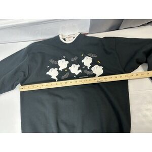Hallmark Vintage Halloween Sweatshirt Ghosts Bats Black Size Large Made USA