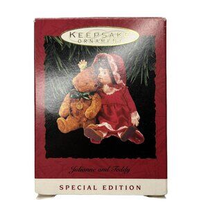 Celebrate the holidays with the Hallmark Vintage Keepsake Ornament Julianne and Teddy 1993 Special Edition Box. This charming ornament is a perfect addition to your Christmas tree and a wonderful keepsake for years to come.