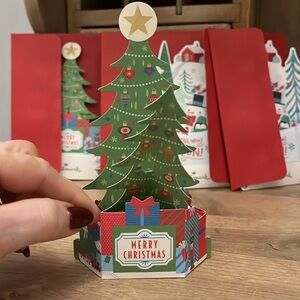 Hallmark Wonderfolds Pop-Up Christmas Cards Set of 6 Two Varieties Tree Snowman