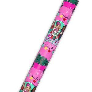 Add a pop of pink to your holiday gifts with this wrapping paper that gives a festive center stage to B and her friends, Daisy and Brooklyn. Christmas wrapping paper roll features dolls in winter wear holding gifts, a border of star garland, a Christmas tree on a pink convertible and snowflake details.