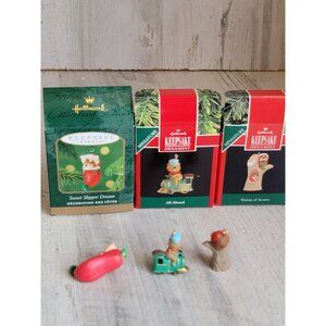 Hallmark groundhog Mouse miniature ornament Xmas set