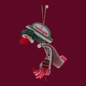 Hallmark& kurt Adler set of 2 christmas ornaments grandma & grandaughter includes shelf with hat and scarf grandaughter ornament and on the back it has written "a grandaughter is everything happy and bright 2004" and grandma little angel teddy bears in great condition without box smoke and pet free home.139