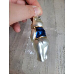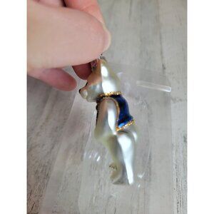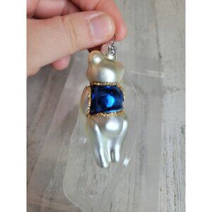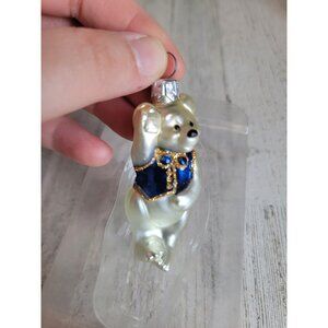 HALLMARK Keepsake LI’L TEDDY BEAR Blue vest White BEAR Blown Glass