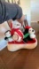 Charming plush snowman, penguin, and dog on a sled. Ideal for holiday decor. Features vibrant colors.