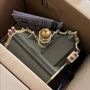 Hallmark Keepsake tree topper inspired by the Haunted Mansion. Features detailed brown structure with green dome. Ideal for festive decoration.