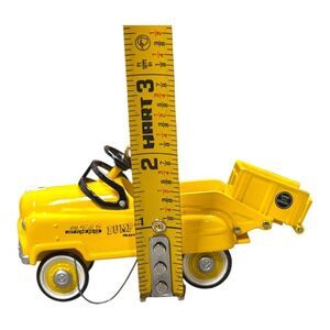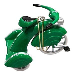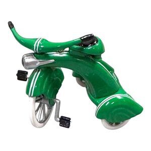 These Hallmark Keepsake collectibles from 1997, crafted in die-cast metal, celebrate the charm of vintage kiddie cars. Featuring a yellow dump truck and a green tricycle, they are ideal for collectors who appreciate the nostalgia and craftsmanship of classic childhood toys.